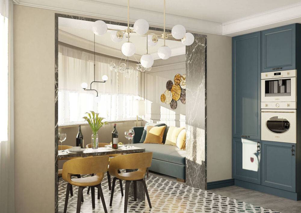 Слияние кухни с гостиной позволяет сделать помещение более комфортным и свободным, а также создать отдельные зоны для отдыха, приема пищи.