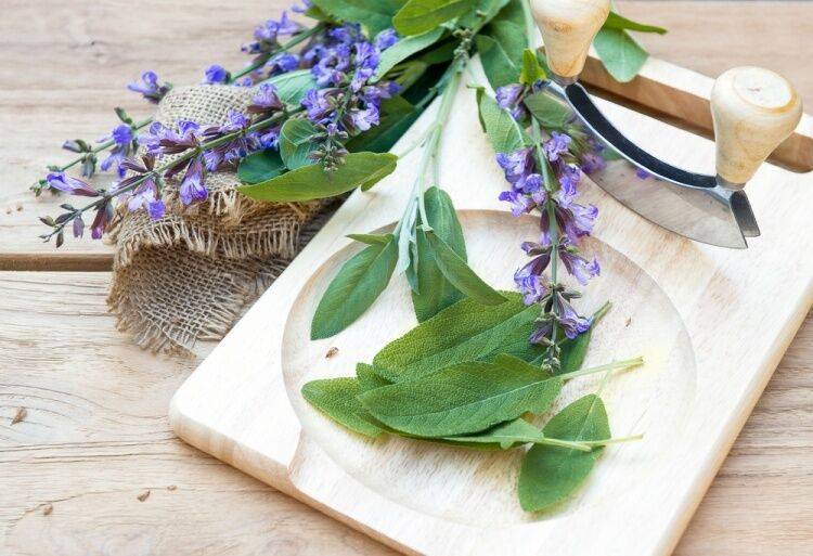 Листья этого растения содержат ценное эфирное масло, флавоноиды, дубильные вещества и другие антибактериальные и дезинфицирующие вещества. Благодаря этому, настой шалфея идеально подходит для полоскания горла при воспалении, а ингаляции помогают очистить нос при рините.
